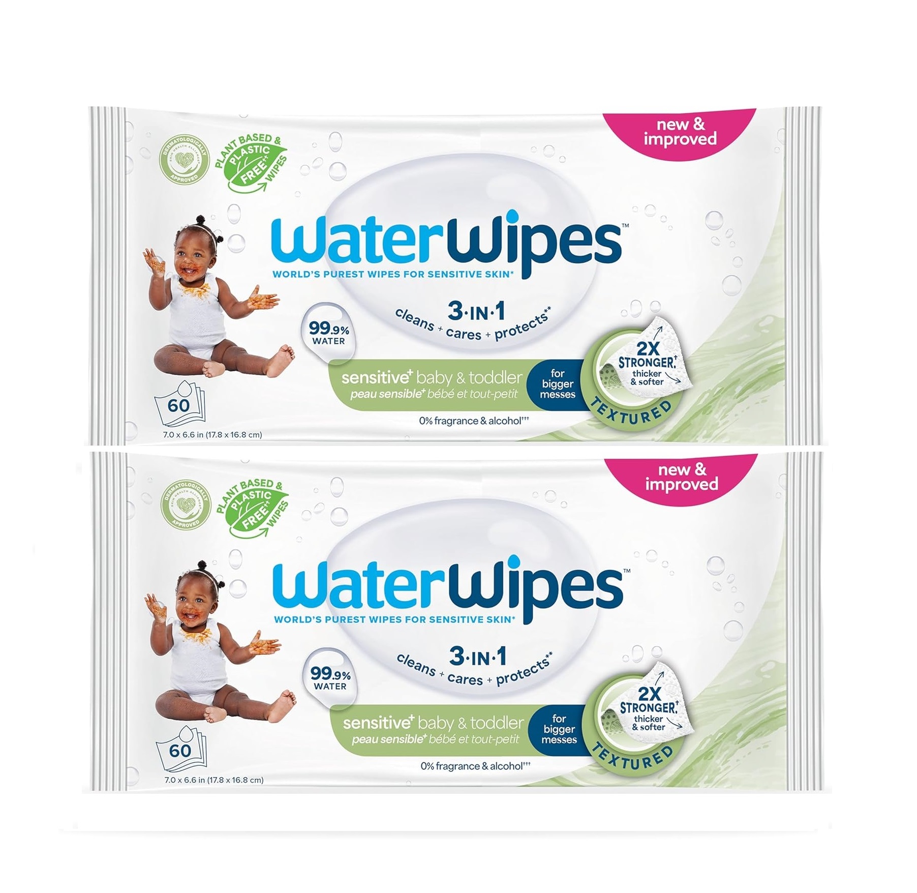 WaterWipes Lot de 2 Lingettes 3en1 à l’eau NOUVELLES Peau Sensible + Visage et Mains