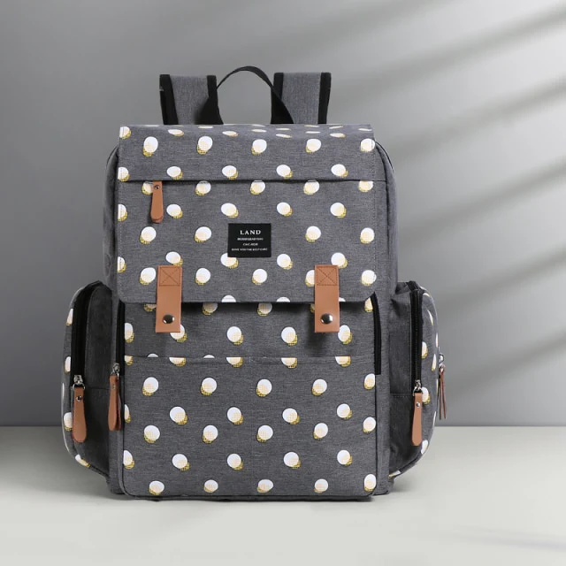 Sac à langer à dos imperméable gris à pois