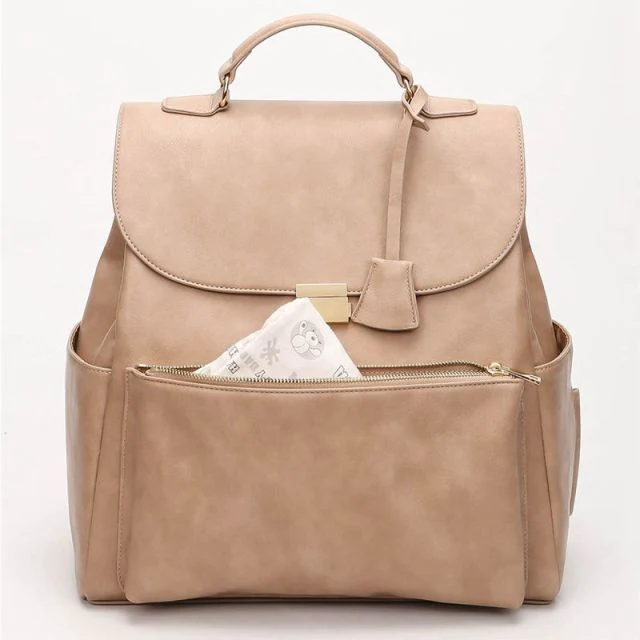 Sac à langer à dos cuir vegan (beige)