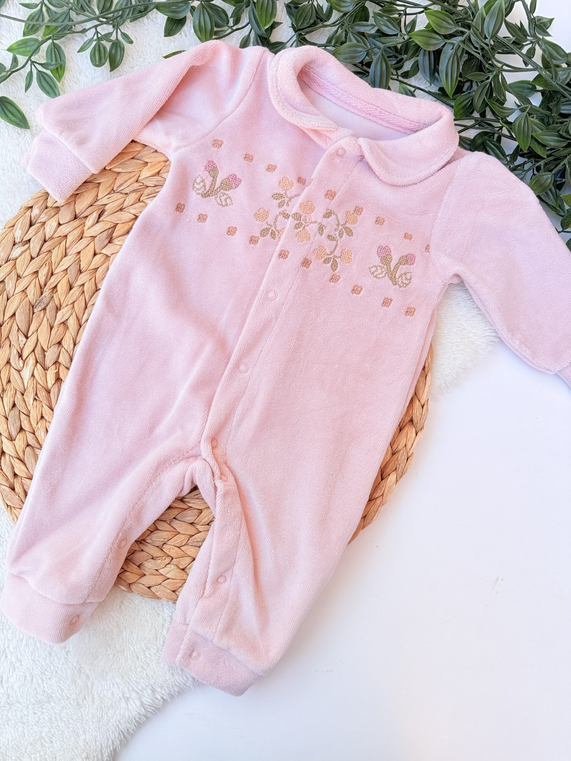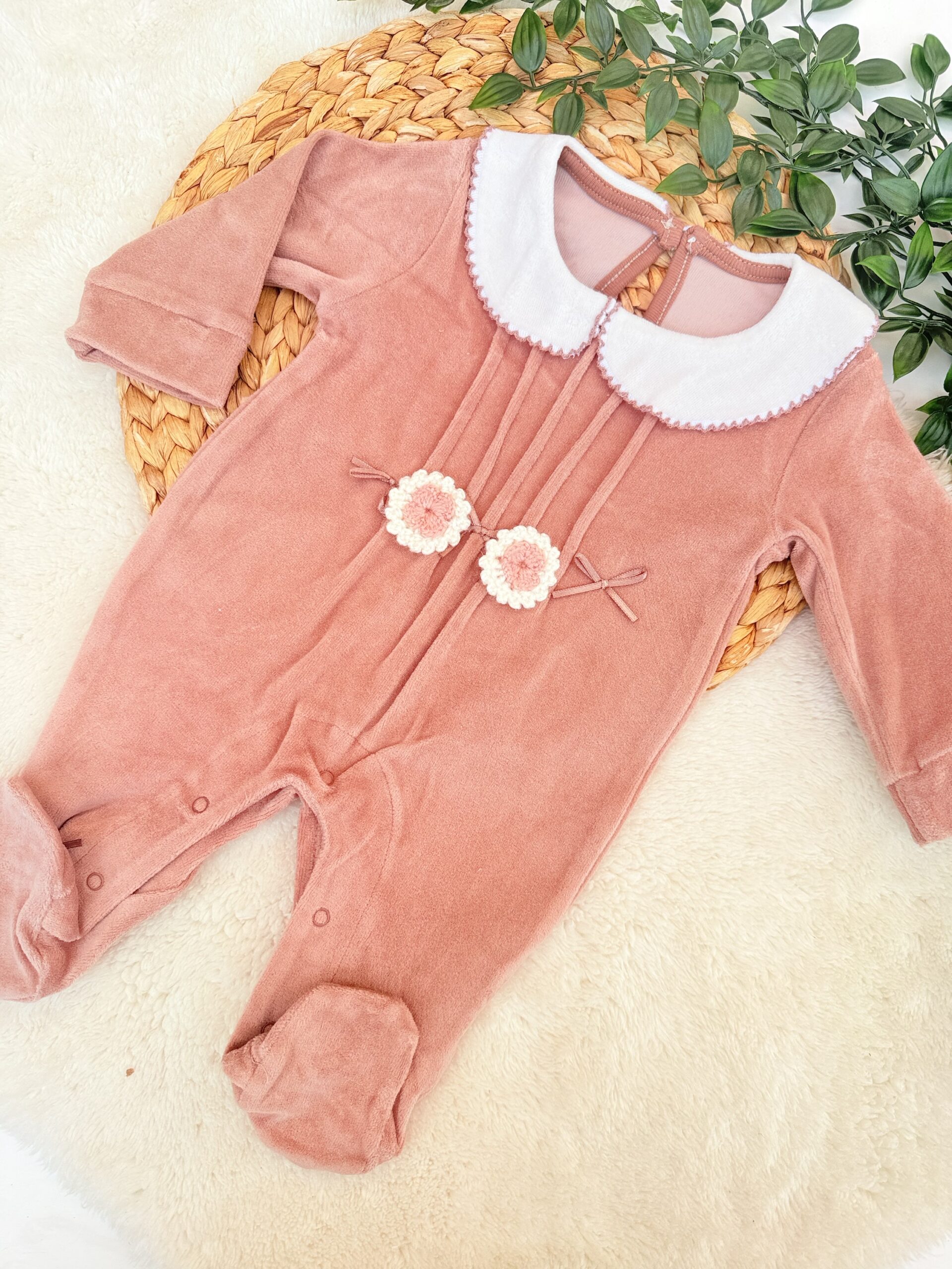 Lot 3 Grenouillères 0-3mois rose Velours et Coton – Douceur et Chaleur