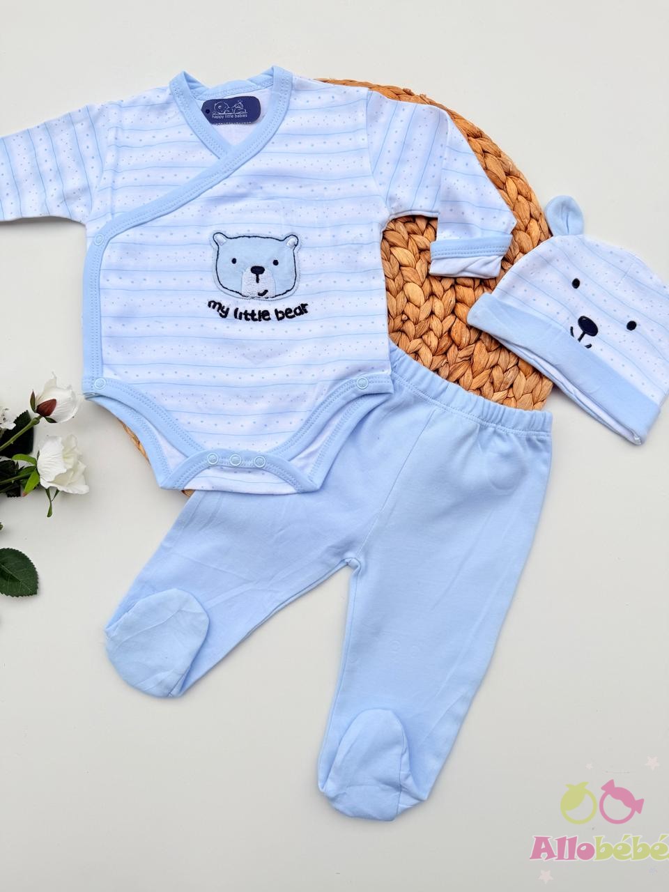 Ensemble hôpital pour bébé 100% coton – Bleu