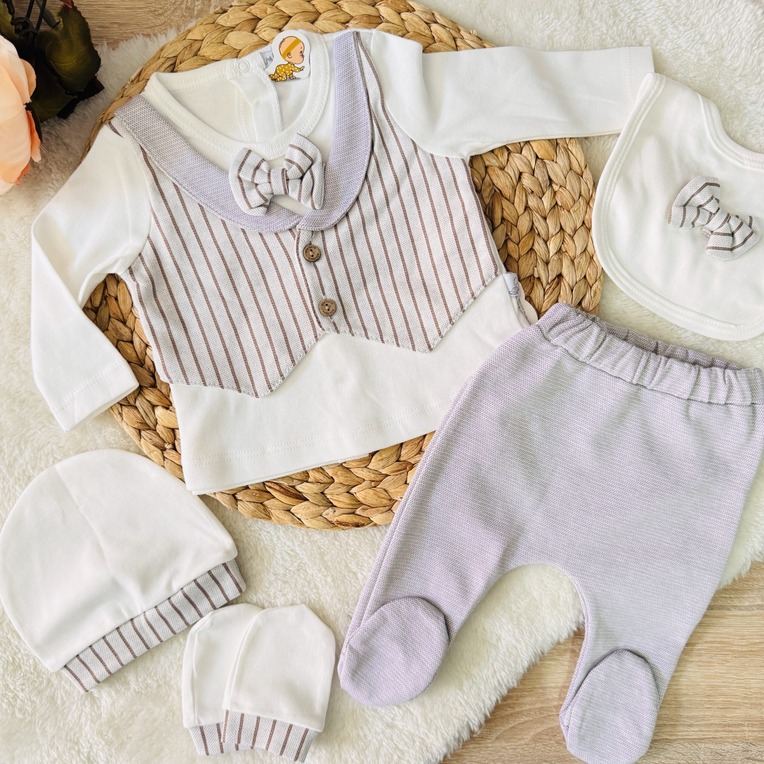 Pack Naissance 5 Pcs – Élégant Doux en Coton Premium