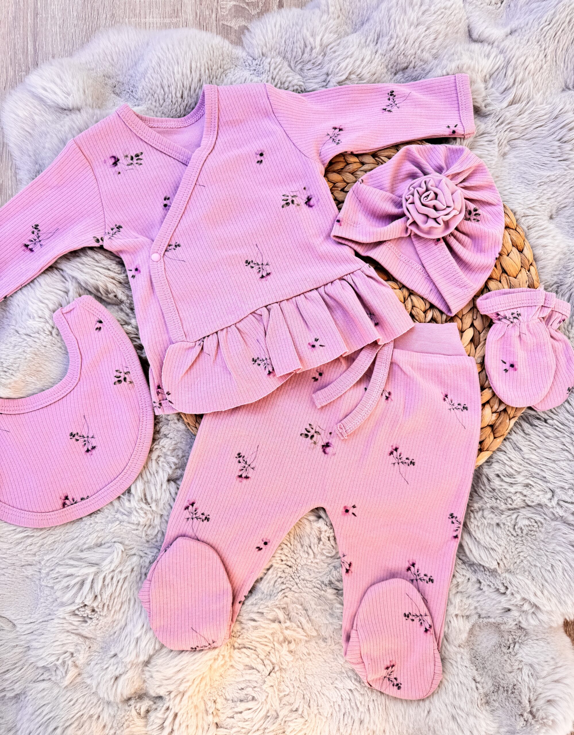 Pack naissance 5pcs en coton épais avec des fleurs 3D