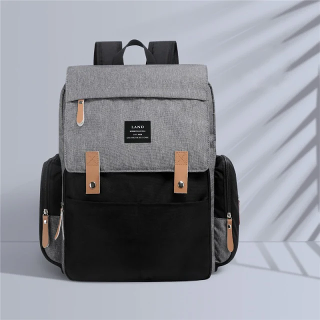 Sac à langer à dos (gris & noir)