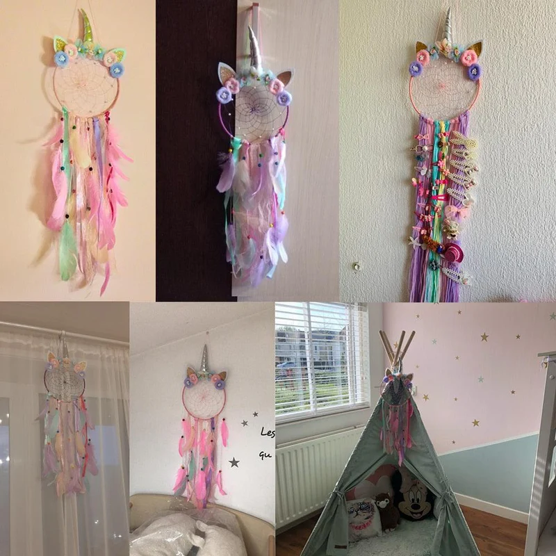 Vous recherchez un attrape rêve lumineux pour votre bout de chou ? Faites entrez chez vous un esprit onirique et fantastique avec ce sublime attrape rêve licorne. Le capteur de rêves est généralement placé au-dessus de la tête de lit mais sa disposition est totalement à votre guise ou selon votre intérieur.