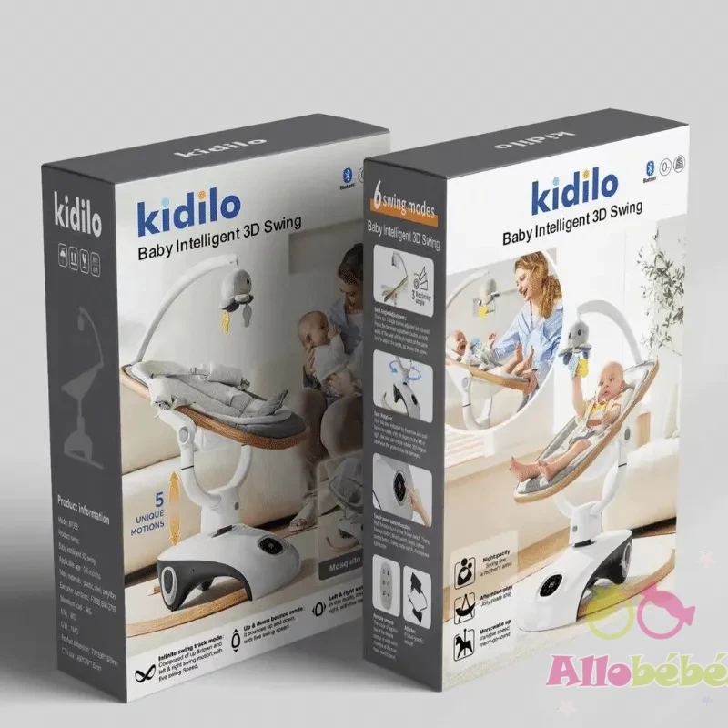 Offrez à votre bébé des moments de détente et de plaisir avec la Balançoire 3D Intelligente Kidilo, une innovation conçue pour apaiser, divertir et sécuriser votre tout-petit dès la naissance.