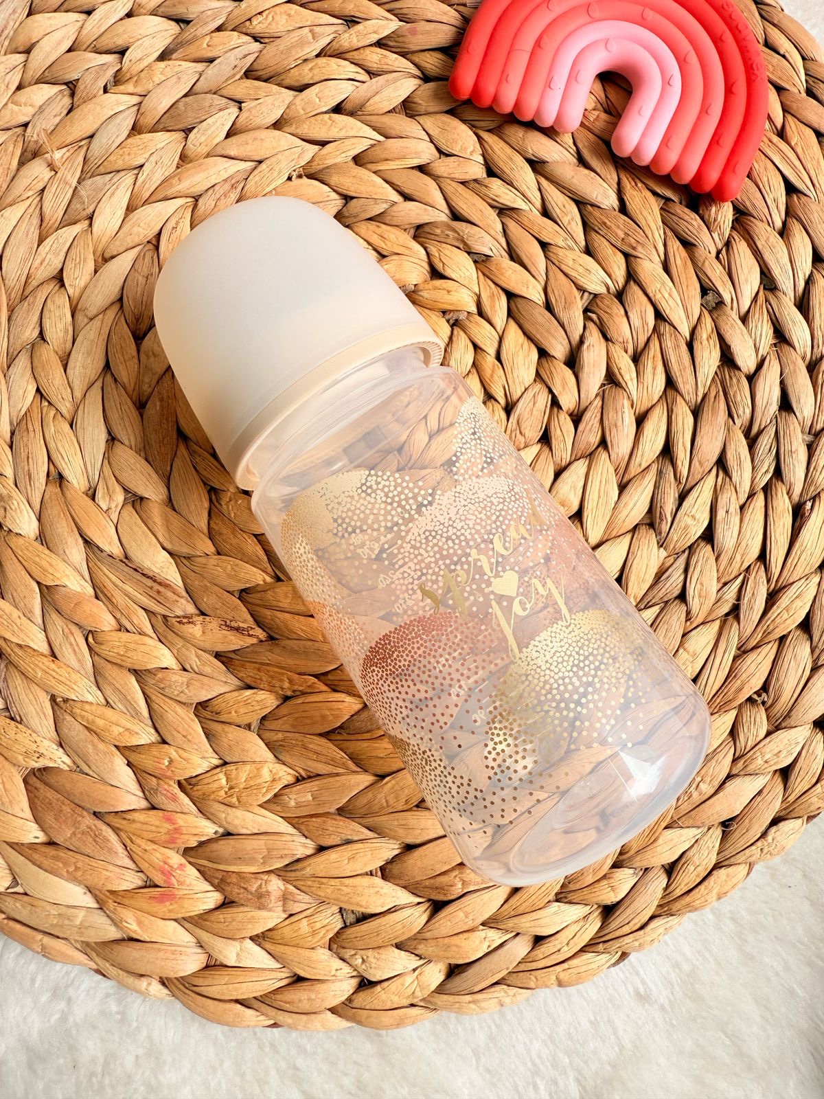 Le biberon Suavinex Spread Joy est un biberon de 270ml avec une tétine en silicone Flow Medium, adapté aux bébés de 3 mois et plus. Son design scintillant avec des paillettes rend les repas de bébé encore plus joyeux, un repas magique pour bébé !