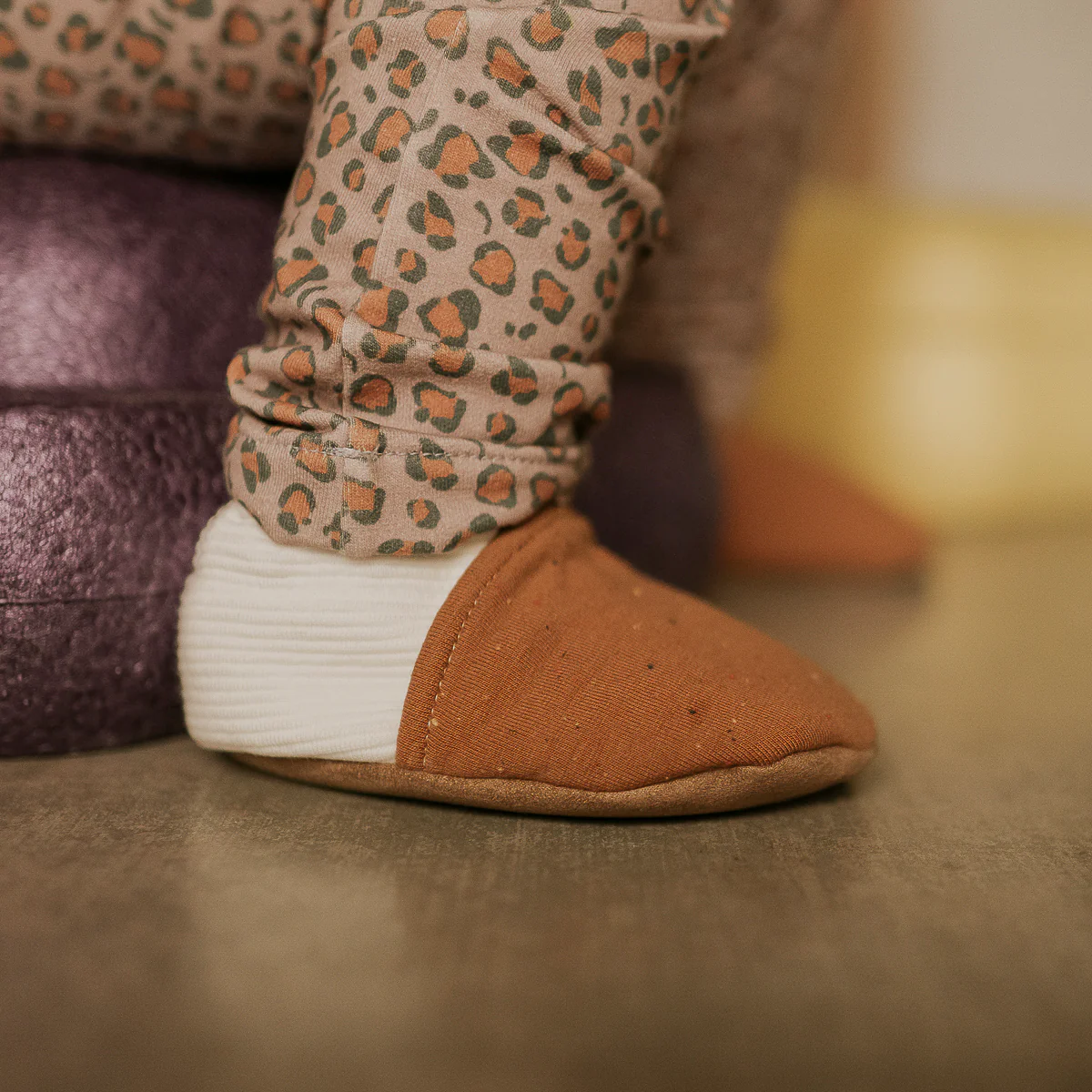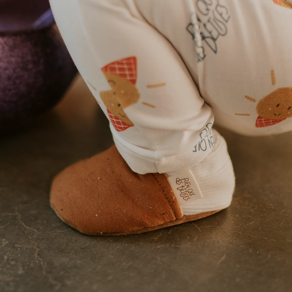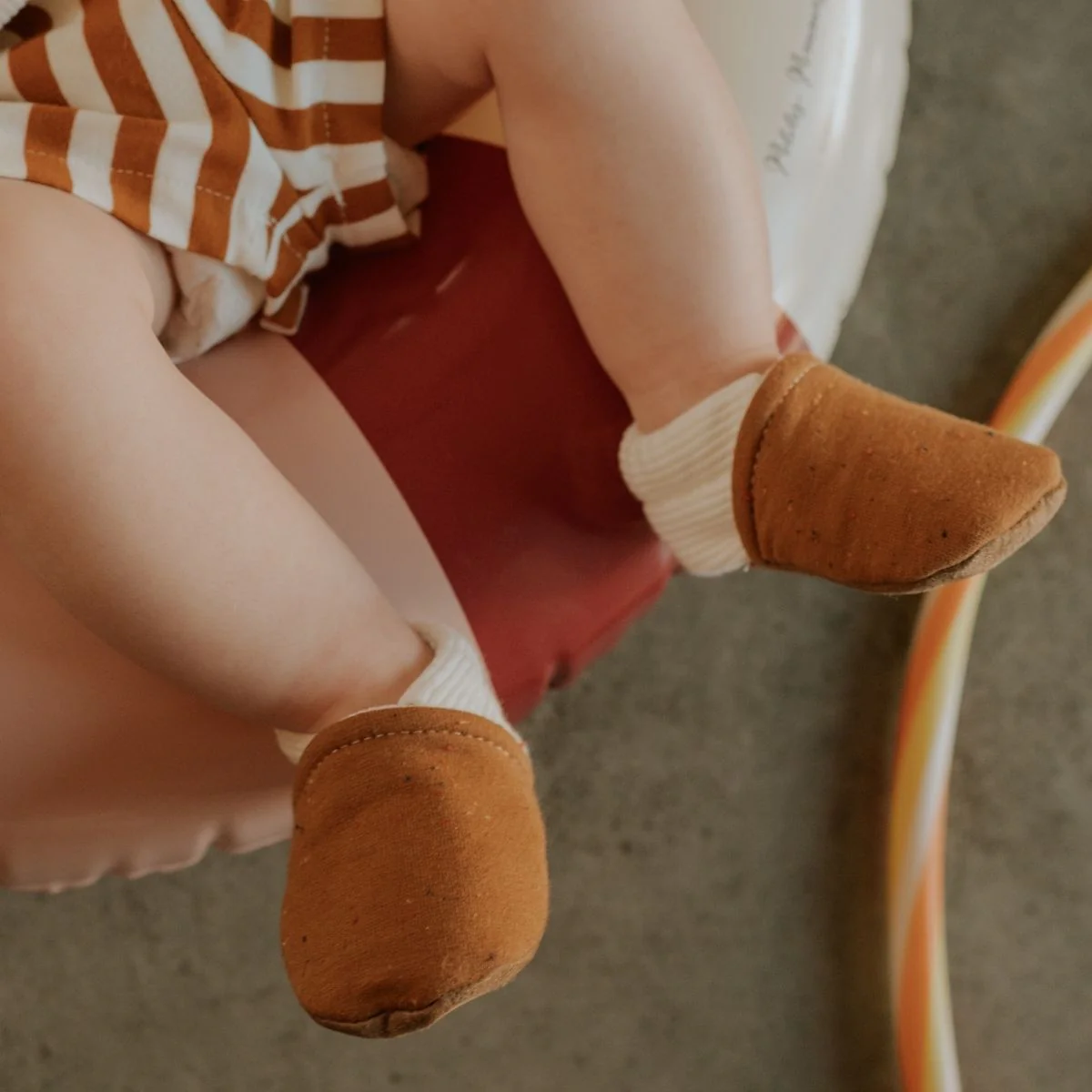 Joli chausson été coloris camel de chez Rien que des bêtises. Fabriqué en France