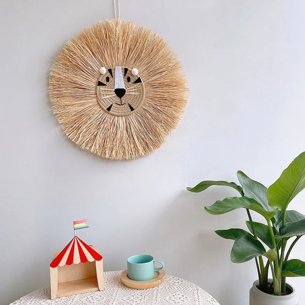 Avec sa forme de tête de tigre, cette décoration murale en raphia vous séduira par ses couleurs douces et sa matière naturelle. Réalisée en corde en coton et raphia naturel, elle mesure 60 cm de diamètre et sera parfaite dans la chambre enfant pour y créer une ambiance douce et savane. La décoration murale se compose d’un tigre en relief et de petites fleurs, pour une ambiance zen et relaxante.