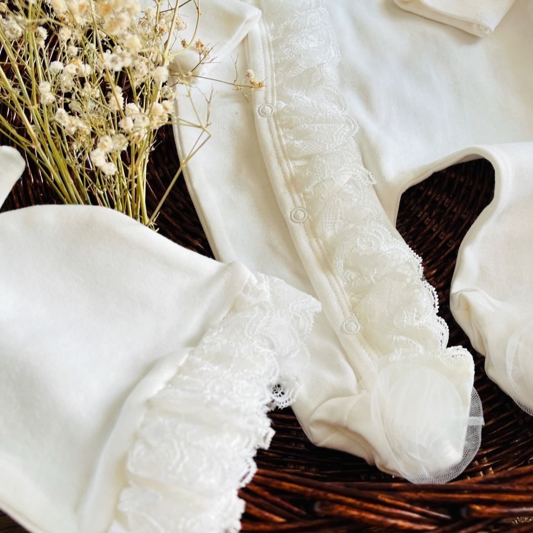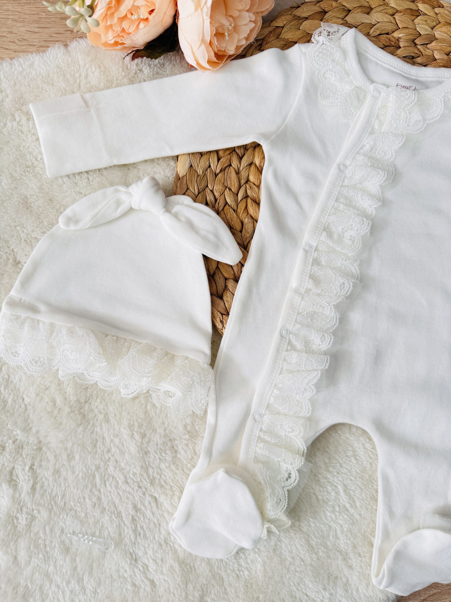 Grenouillère bébé fille dentelle : Un ensemble douillet et élégant pour les petites princesses.