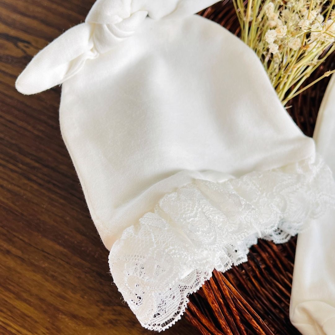 - Bonnet assorti : Un bonnet en dentelle complète l’ensemble.