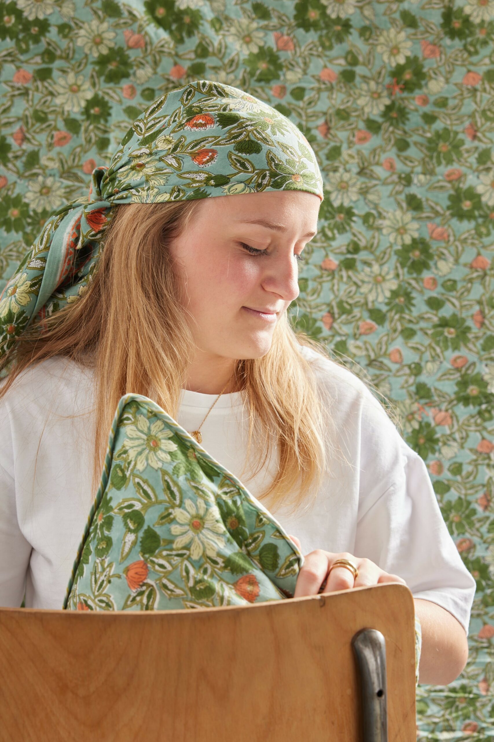 Joli grand foulard de chez bonheur du jour – coloris meera blue green