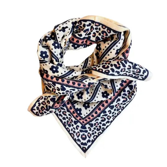 Ce grand foulard Love Explorers est l'accessoire parfait pour donner du caractère à votre look ! Son imprimé alliant léopard et fleurs fait de lui un incontournable pour celles et ceux qui aiment mêler originalité et élégance. À nouer autour du cou, dans les cheveux ou à la poignée d’un sac, il sait ajouter du style en toute simplicité ! 100% coton 100x100 cm