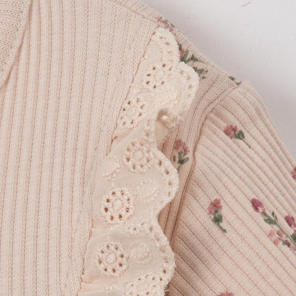 - Style: Motif rayé délicat et dentelle raffinée