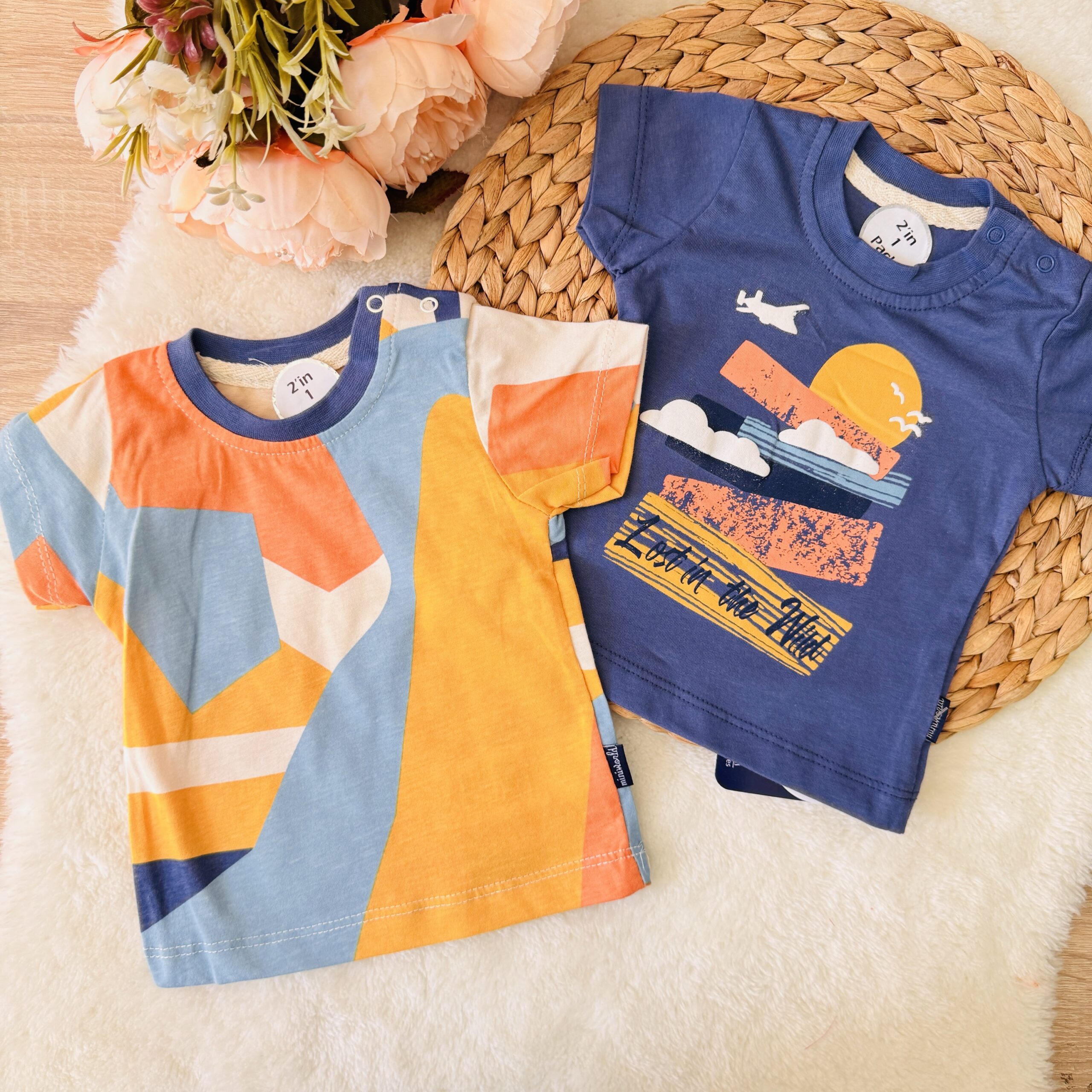 Lot de 2 t-shirts bébé assortis pur coton pour Été indigo : Parfaits pour les Aventures Estivales de Votre Petit Bout de Chou!