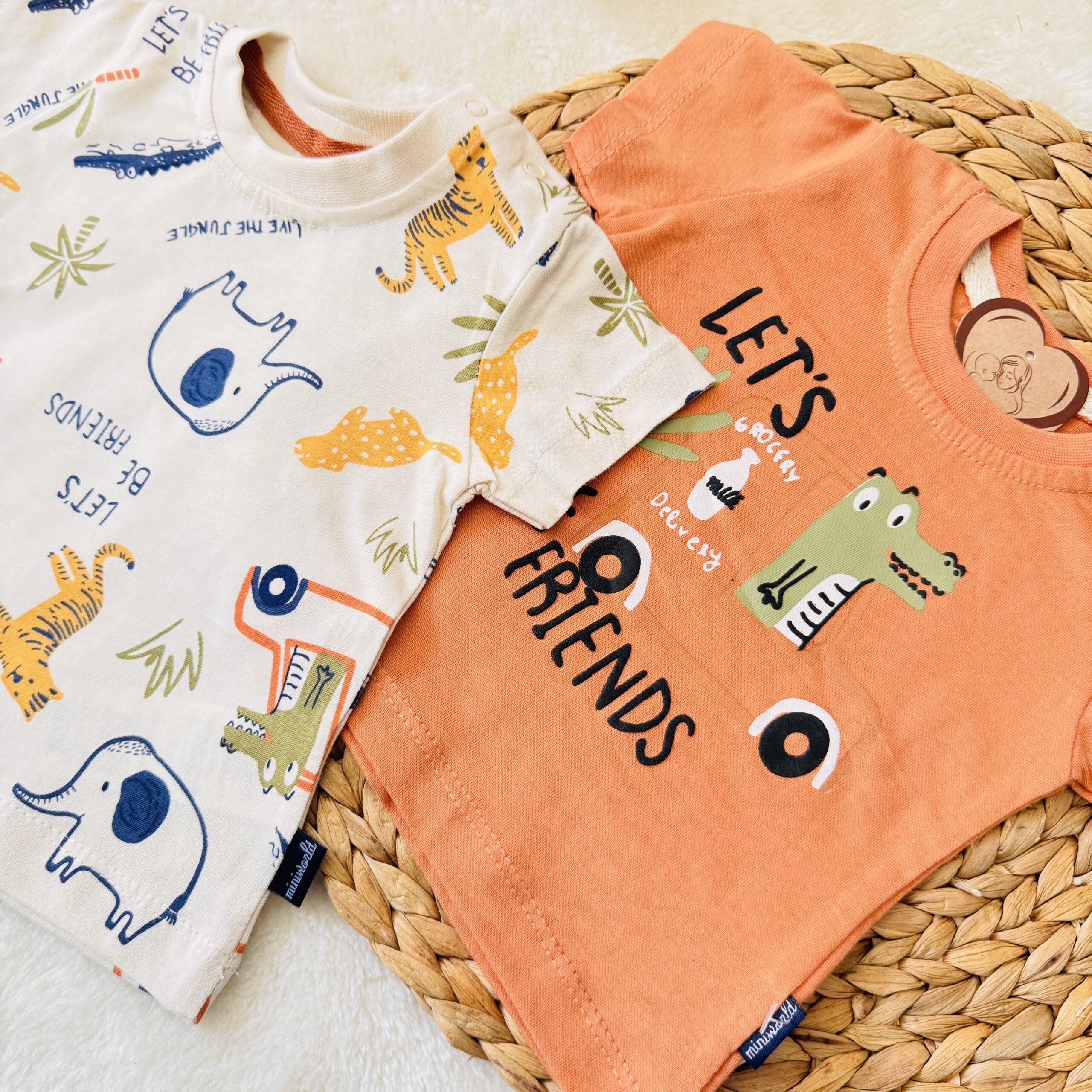 Lot de 2 t-shirts bébé assortis pur coton pour Été : Parfaits pour les Aventures Estivales de Votre Petit Bout de Chou!