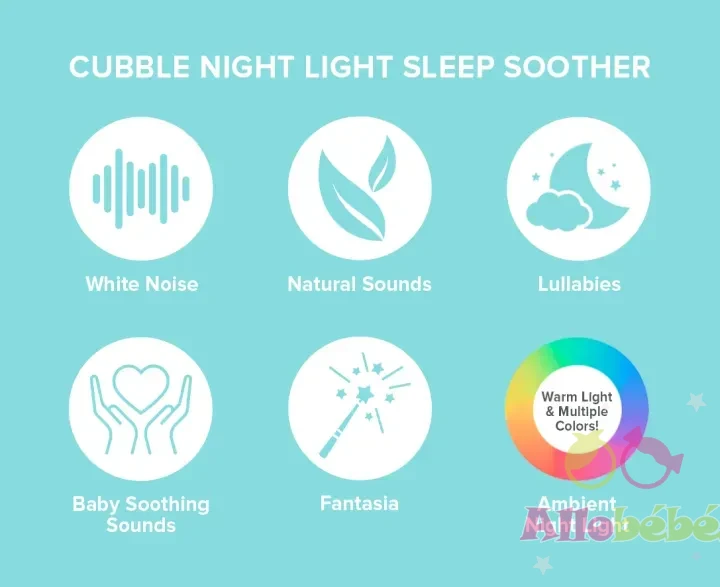 • Type : Appareil 2-en-1 sons apaisants + veilleuse
