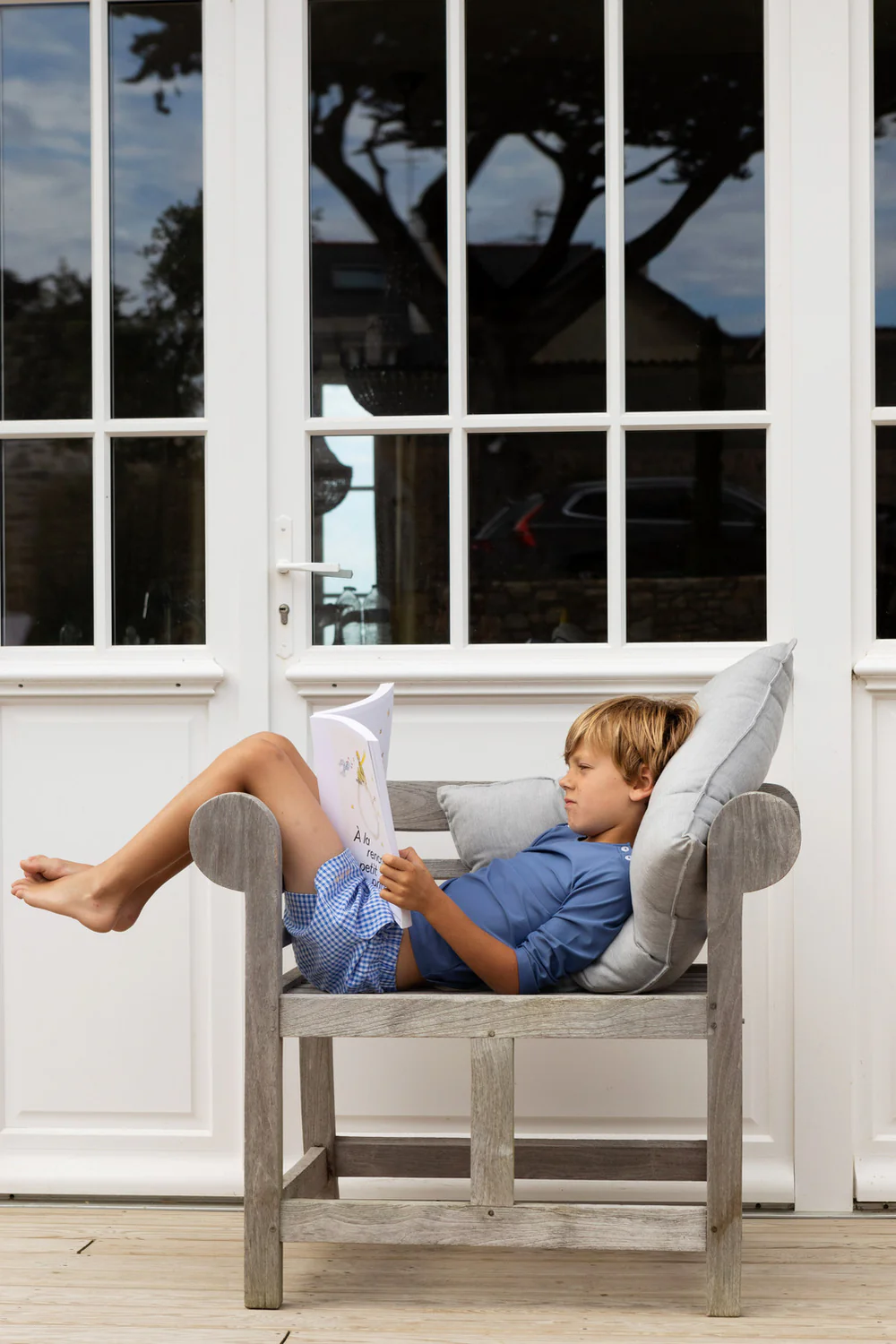 Maillot anti-UV les petits dorés. Modèle matelot coloris bleu foncé. Pour une bonne protection solaire cet été.