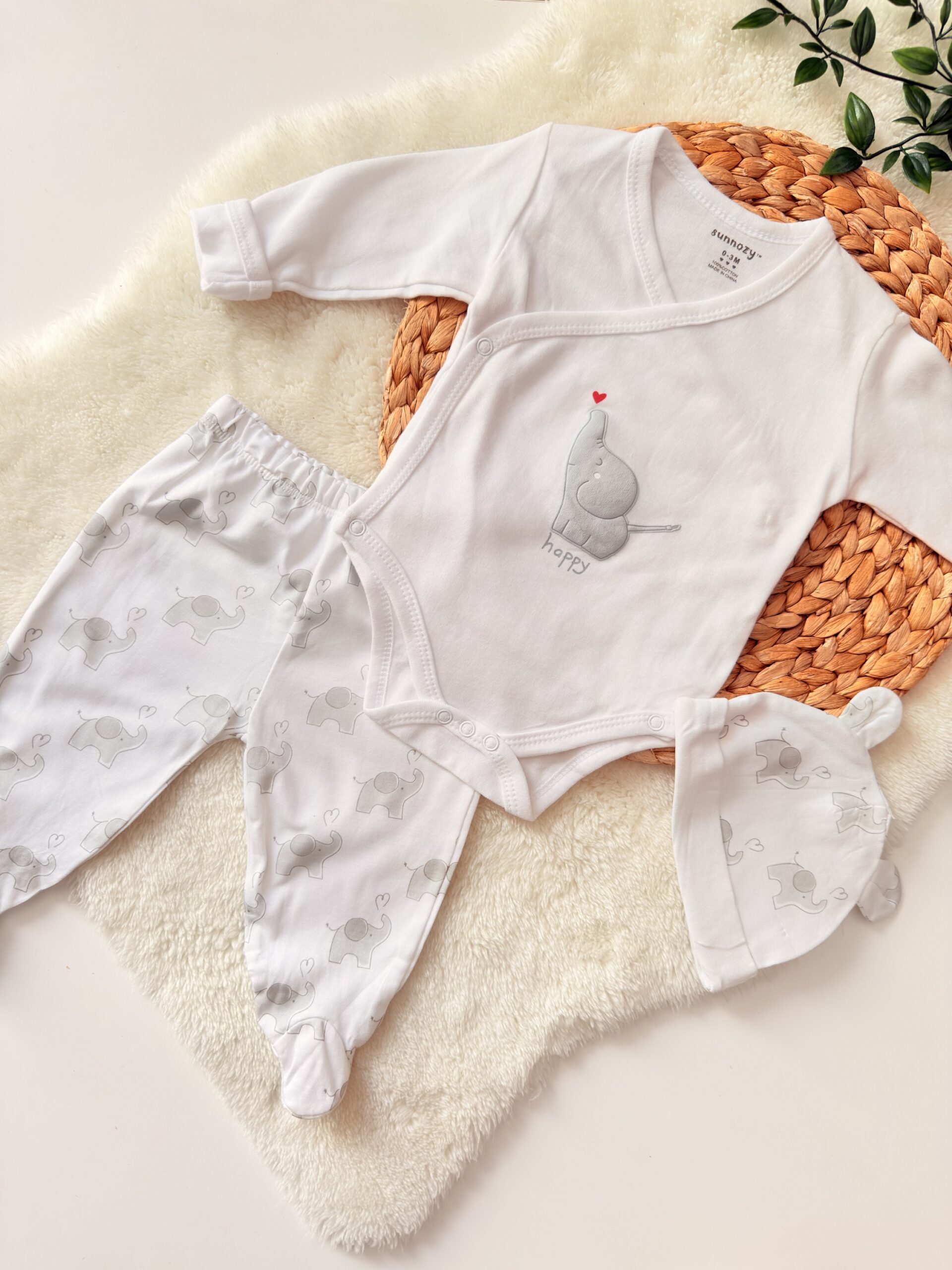 • Designs : Chaque grenouillère présente de jolis motifs variés, apportant une touche de charme et de gaieté. Le bonnet arbore un motif ou une couleur coordonnée.