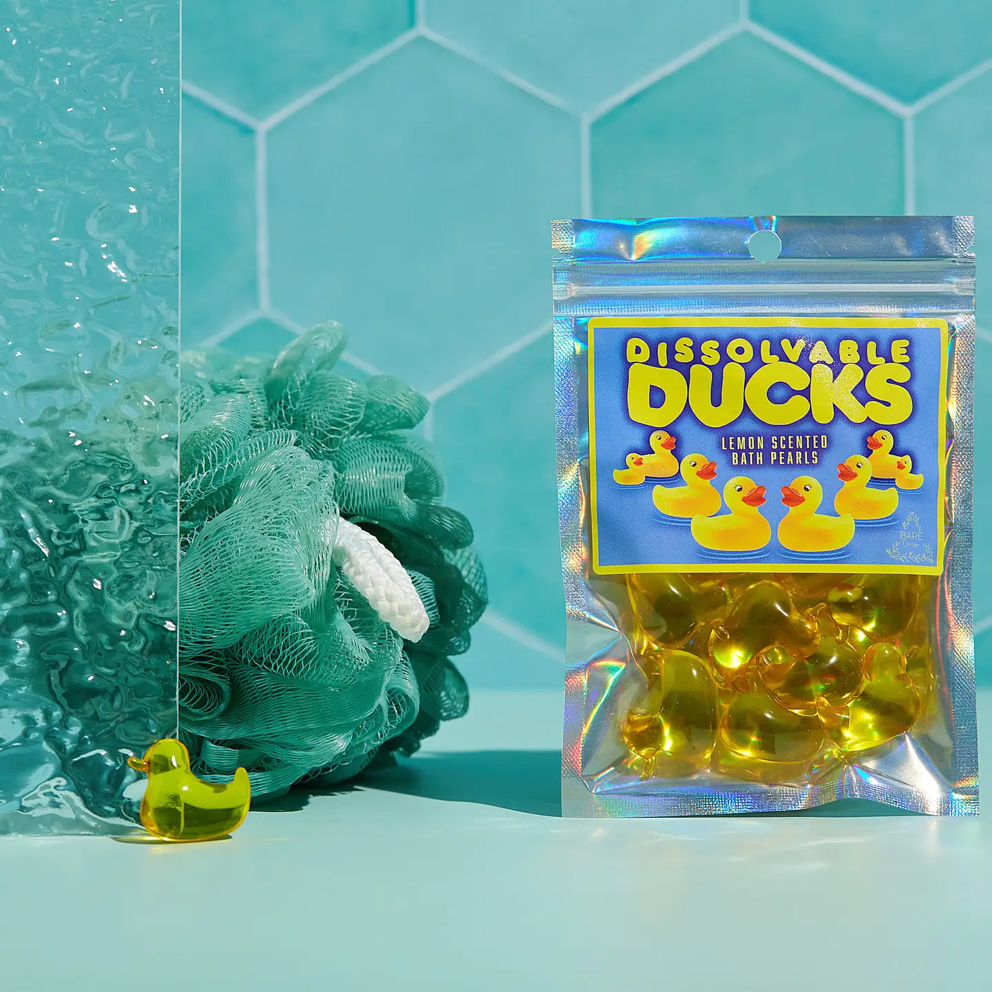 Plongez dans une expérience bain ludique et rafraîchissante avec ces perles de bains canards de notre sélection. Ces petites pastilles en forme de canard se dissolvent entièrement dans l’eau chaude du bain, libérant une douce fragrance d’huile de citron pour une ambiance tonifiante et apaisante. La coque extérieure des “pearls” est 100 % biodégradable, ce qui permet d’allier plaisir sensoriel et respect de l’environnement ! Faciles à utiliser : il suffit de déposer 1 à 2 perles au fond de la baignoire, c’est amplement suffisant pour parfumer l’eau. À l’usage, la texture fond doucement et diffuse la senteur citronnée, laissant la peau délicatement parfumée et hydratée. Le tout dans un petit sachet de 10 canards, parfait pour offrir ou pour se faire plaisir ! Retrouvez notre sélection chez Bonnie Bonnie !