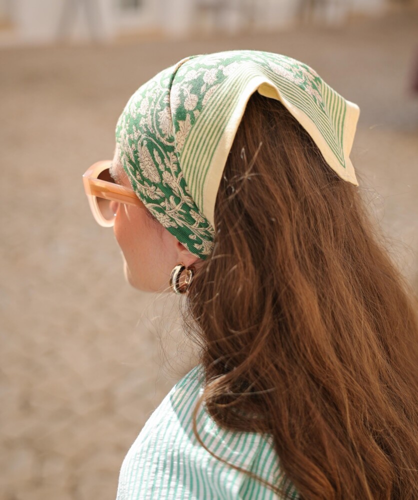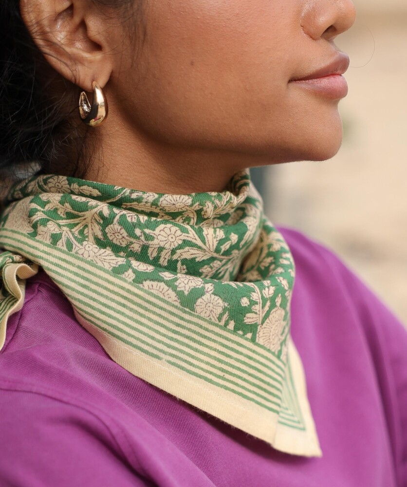 Le petit foulard Anjali prairie est une création exclusive de la marque BELLEMME, spécialiste des accessoires poétiques et colorés. En coton tout doux et au format carré 50 x 50 cm, ce foulard s’adapte aussi bien aux adultes qu’aux enfants. À porter autour du cou façon bandana, noué dans les cheveux ou en accessoire de sac : un indispensable du quotidien ! Retrouver d'autres foulards BELLEMME chez BONNIE BONNIE !