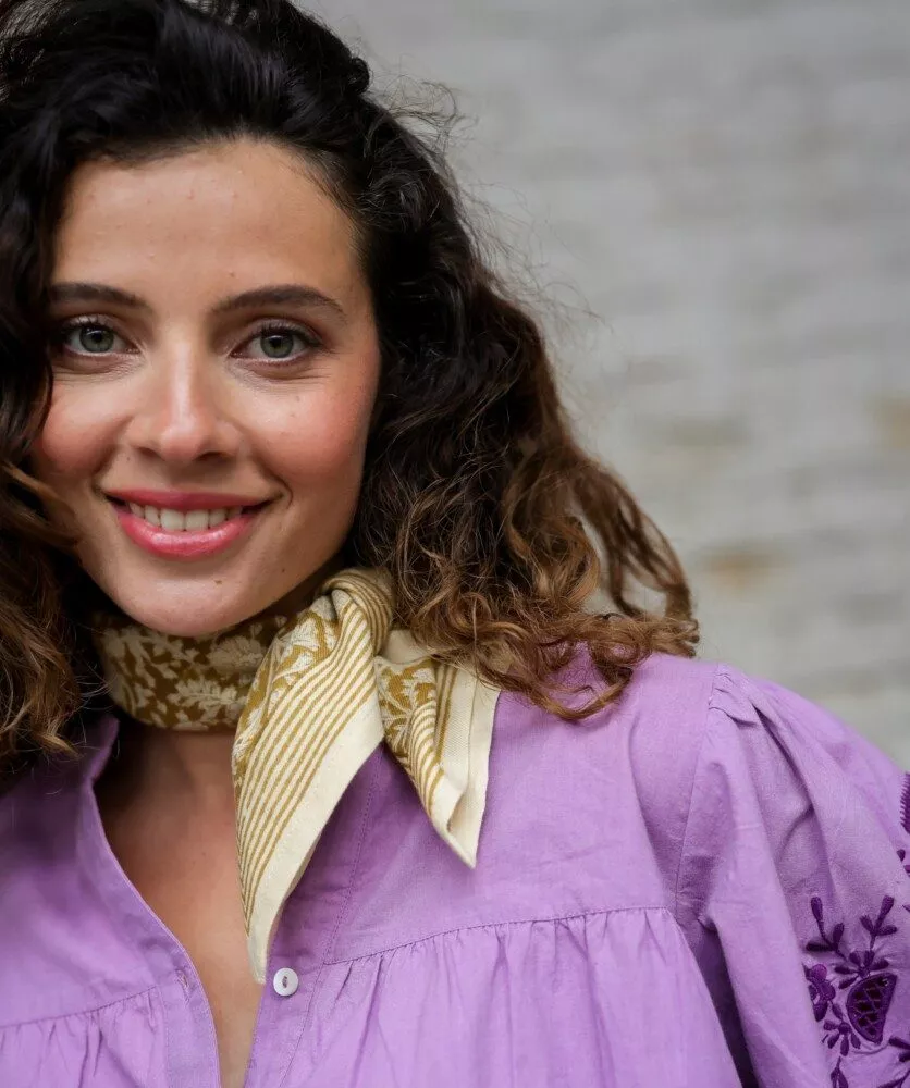 Découvrez le petit Anjali safran de chez BELLEMME. En coton tout doux, son format convient à la fois aux adultes et aux enfants. A nouer de façon “bandana” autour du cou, sur un sac ou encore dans les cheveux.