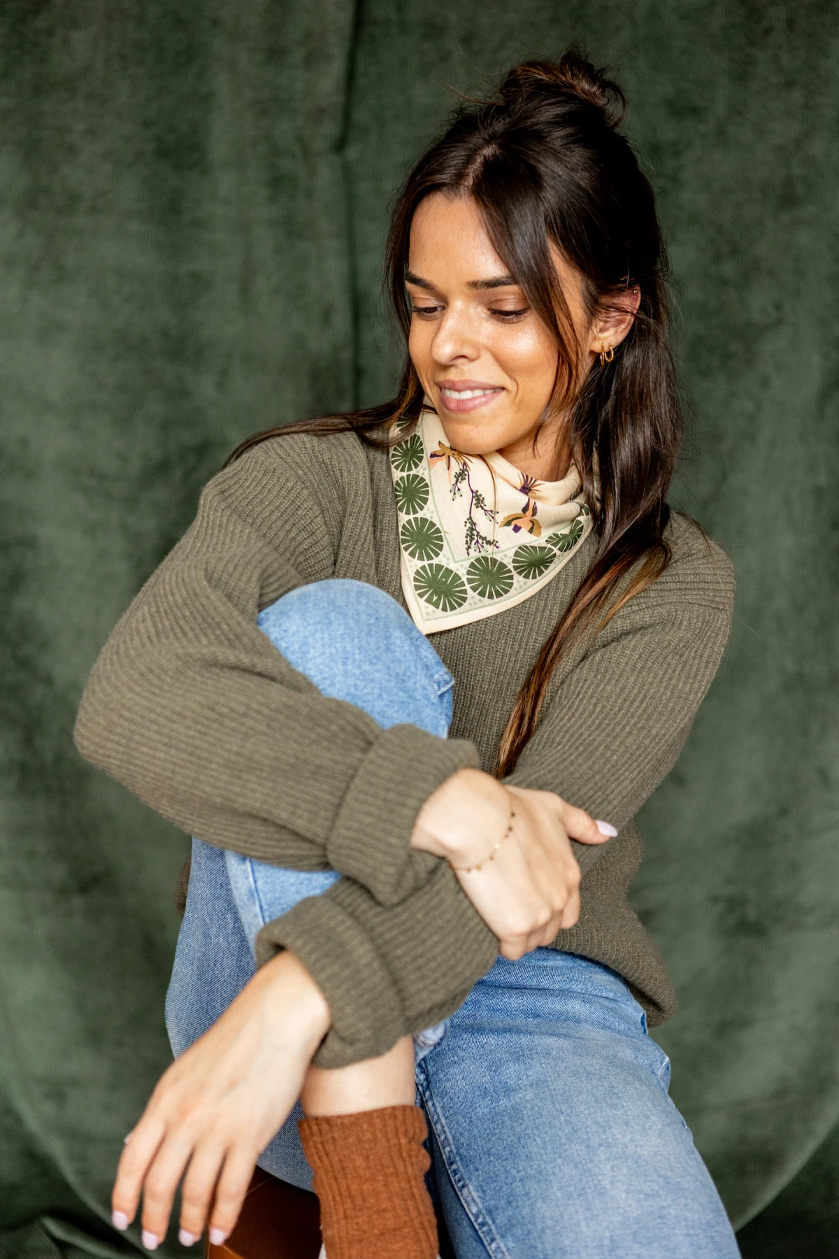 Joli petit foulard manika de chez Apaches coloris cerisier kaki