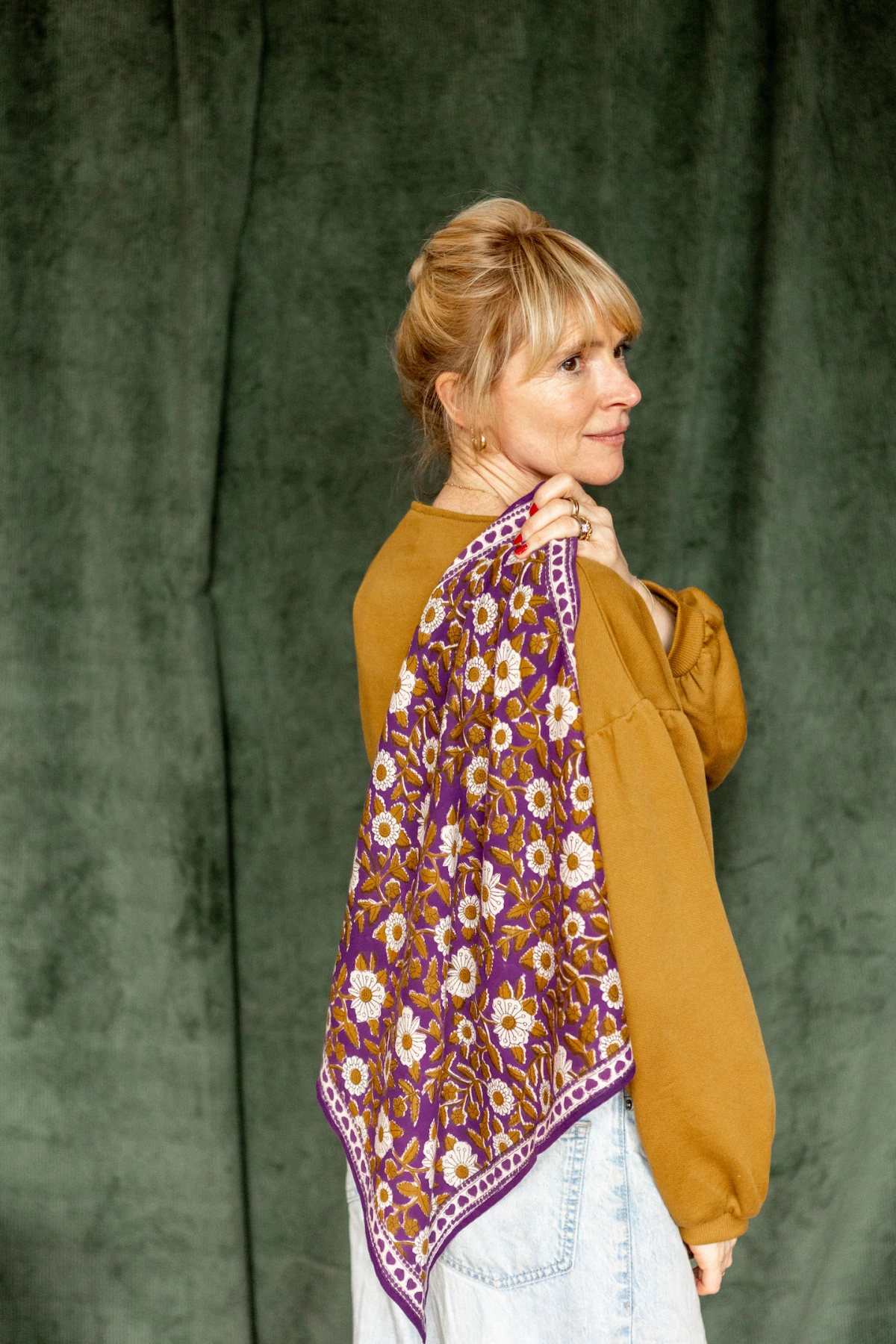 Joli foulard Manika coloris coeur violet de chez Apaches