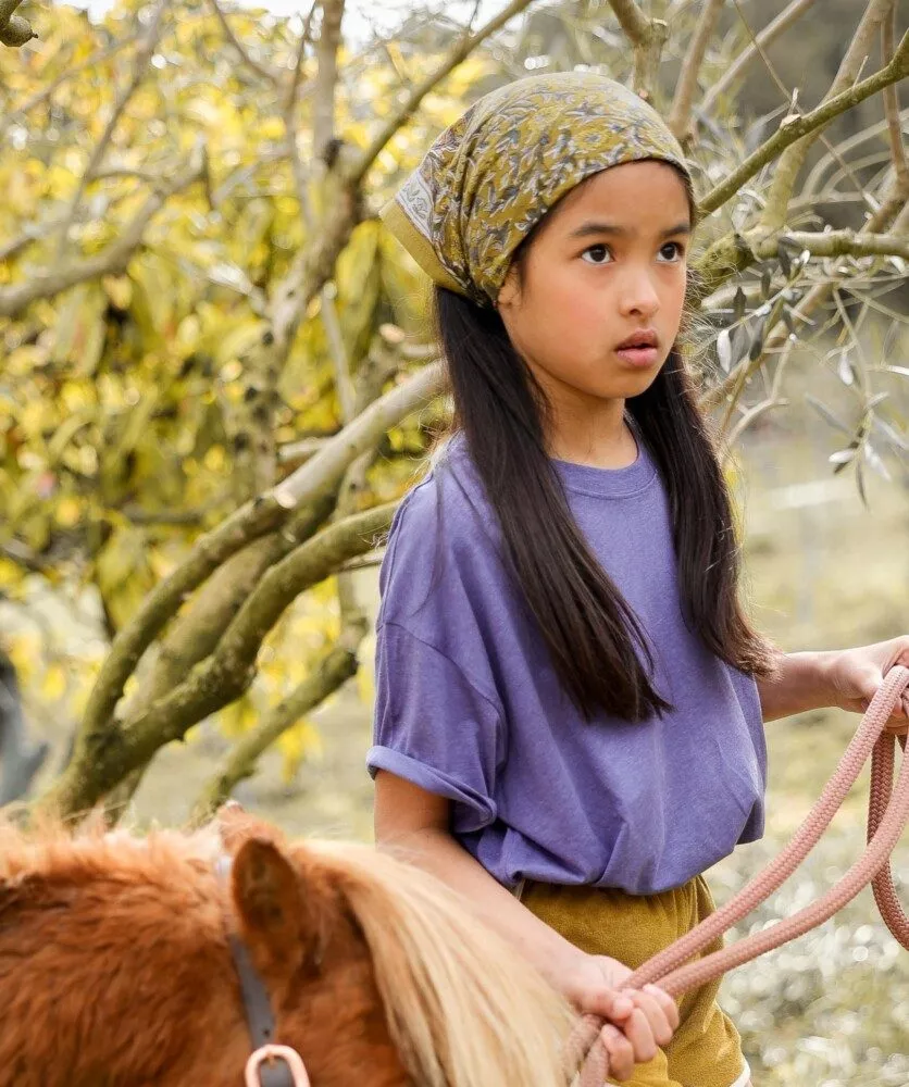 Un foulard carré en coton doux au motif Scarlett Gold, accessoire polyvalent et stylé pour rehausser toutes tes tenues. Son petit format permet de le porter autour du cou, dans les cheveux ou noué sur un sac pour une touche mode unique.