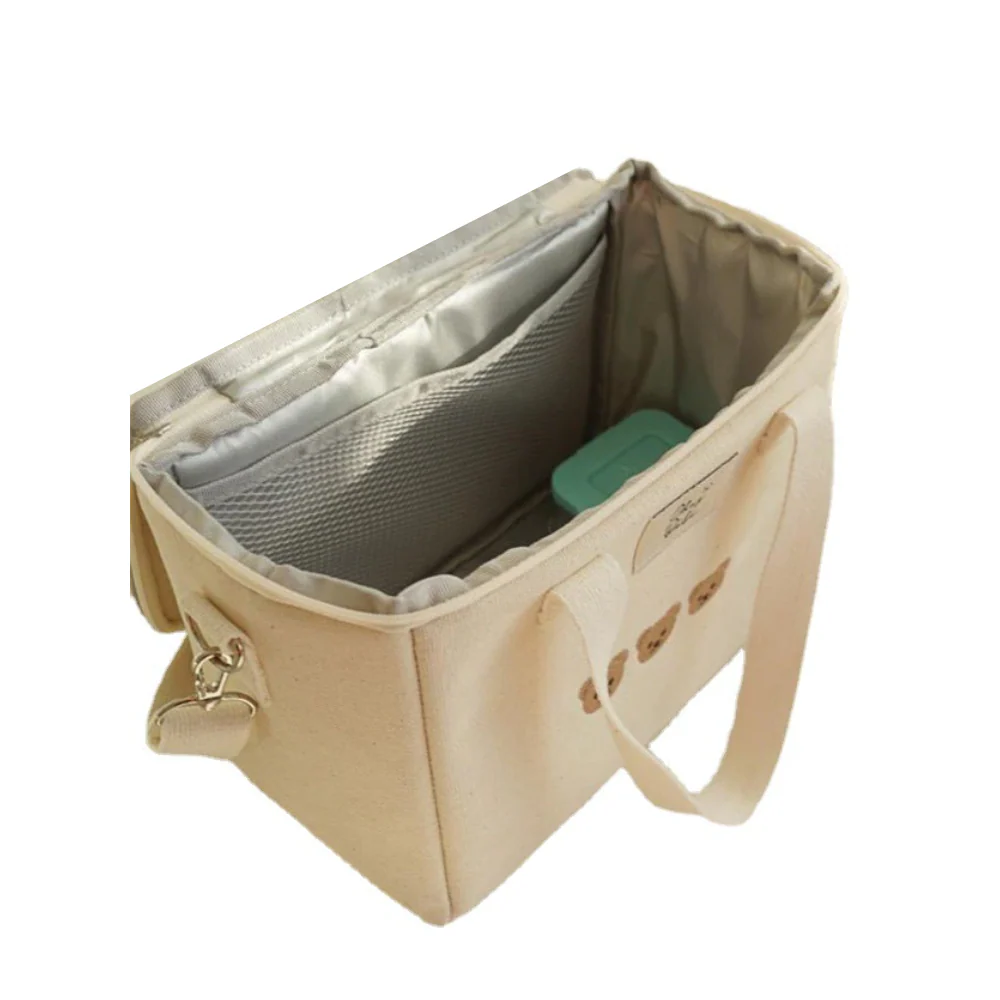 Le sac à langer rigide Bear est le sac idéal pour les jeunes mamans souhaitant transporter le minimum nécessaire pour leurs sorties avec bébé. Son revêtement en lin, lui donne un look chic et élégant. Son intérieur isotherme permet de garder un biberon à température jusqu’à trois heures.