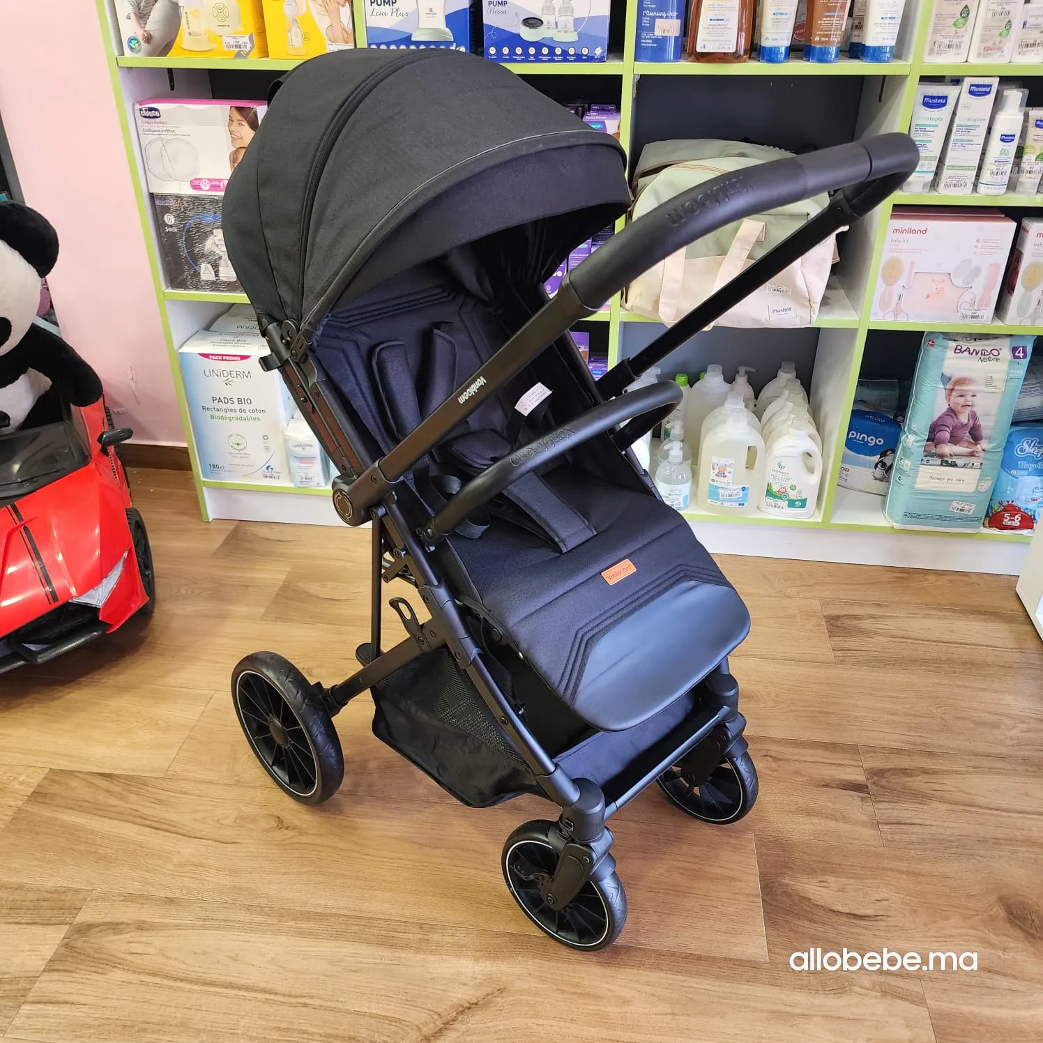 - Le châssis de la poussette est à la fois léger et résistant, assurant ainsi une durabilité optimale. De plus, son design élégant avec un insert doré ajoute une touche d’élégance.