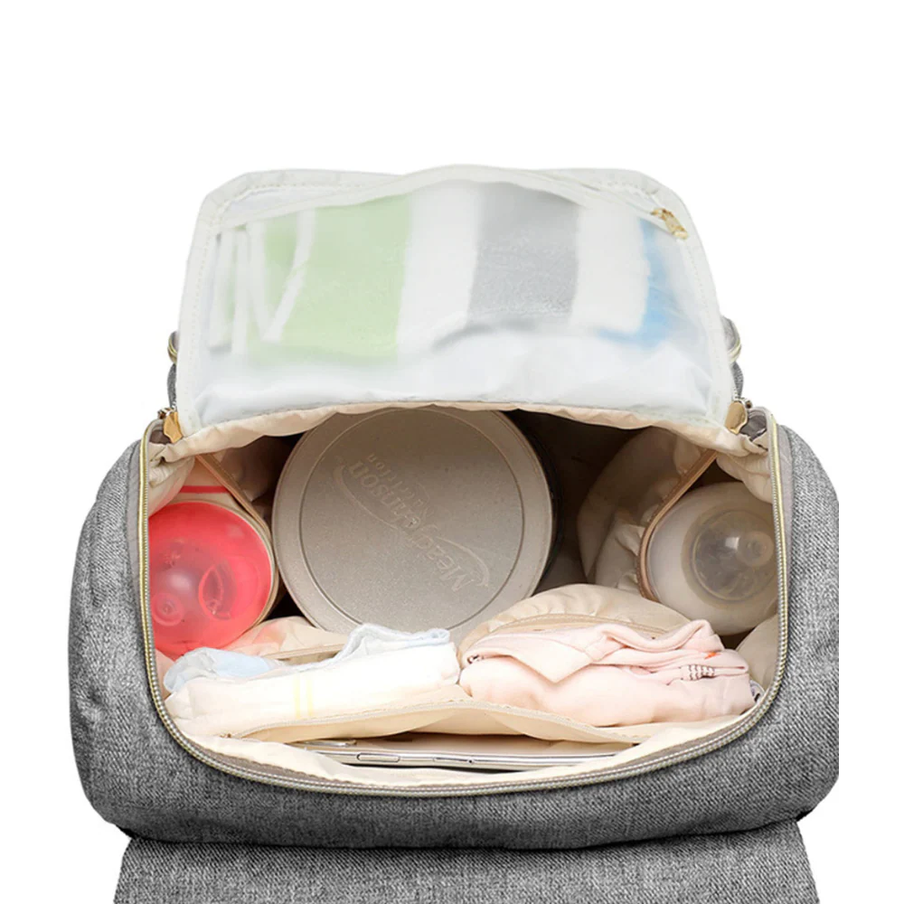 Le sac à langer à dos est doté d’une anse poignée et d’une paire d’épaules rembourrées et ajustables pour un meilleur portage. Vous pouvez également le suspendre à la poussette grâce aux harnais fournis. Il est également livré avec un chauffe-biberon qui peut être branché à un port USB pour vous offrir une fonction mains libres et un support supplémentaire pour les biberons.