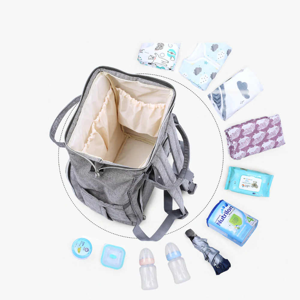 À l’intérieur du sac à langer, de grandes pochettes élastiques peuvent accueillir les couches, les vêtements et autres affaires indispensables pour votre enfant. A l’extérieur, 6 poches, dont une isotherme, offrent des rangements supplémentaires pour les biberons et autres articles.