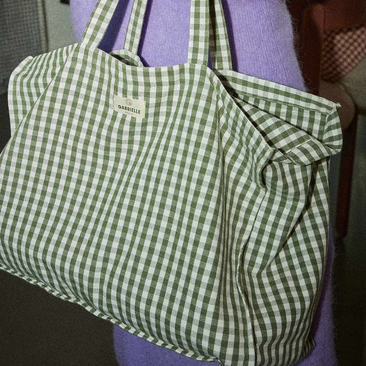Sac week-end en coton vichy kaki