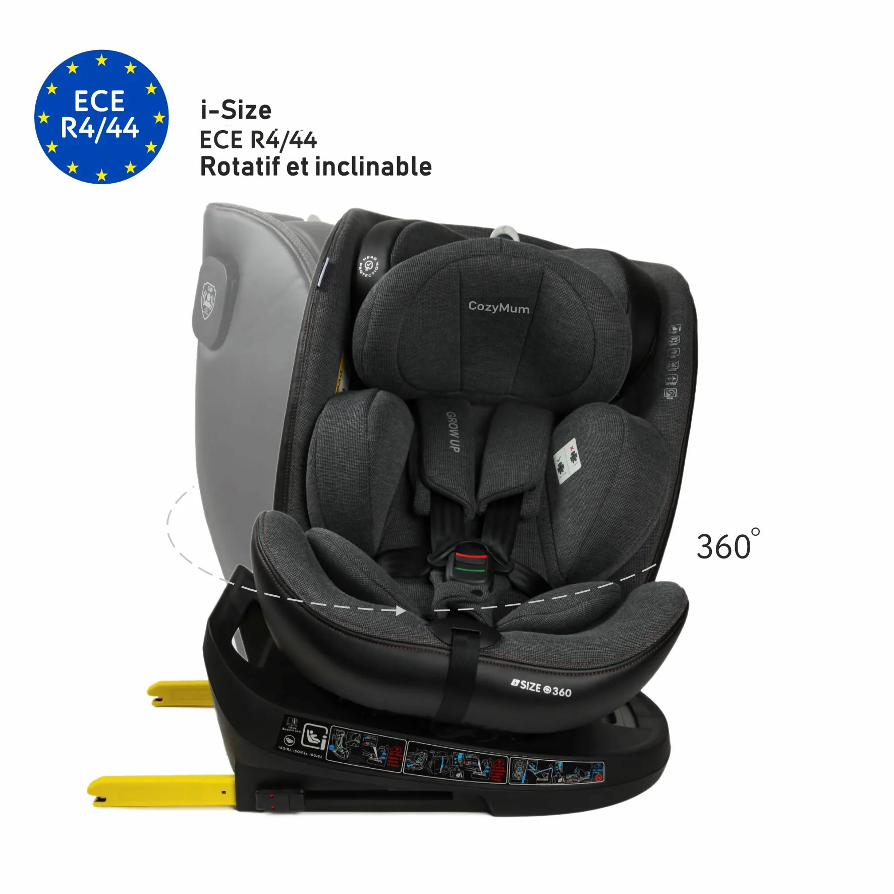 Siège Auto Cozymum Isofix Rotatif  i-SIZE Grow Up ST6 – Sécurité et Confort de 0 à 150 cm