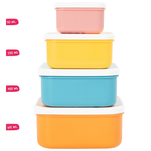 Elles s’empilent et se rangent les unes dans les autres. Un vrai gain de place dans votre cuisine ! Le couvercle des Snacking Box est facile à ouvrir et à refermer même pour des petites mains. Elles passent au micro-ondes et au lave-vaisselle. Colorées et futées, ces petites boites sont idéales pour le goûter !