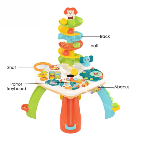 Cette table de jeu est équipée d’un cerceau à billes et d’un toboggan à billes, offrant ainsi aux enfants une expérience sensorielle unique. Les différentes activités permettent aux tout-petits d’entendre des sons et des chansons, améliorant ainsi leur capacité auditive. De plus, la manipulation des billes aide à développer la coordination des mouvements, tout en stimulant la cognition des formes, des couleurs et des objets.
