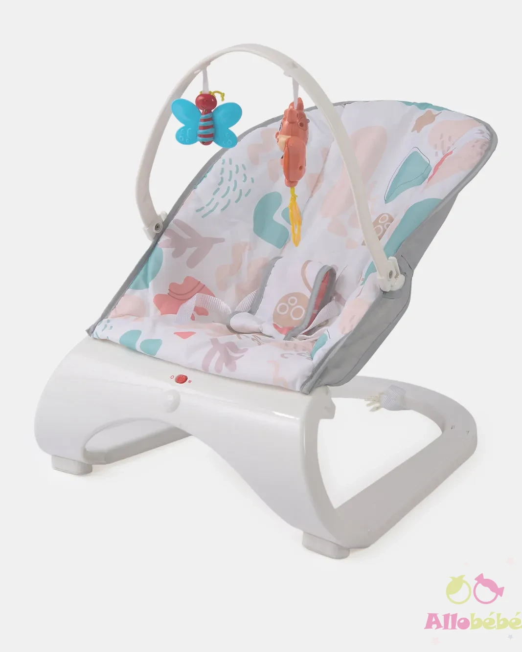 L’arche se retire facilement lorsque bébé grandit pour transformer le transat en siège relaxation.